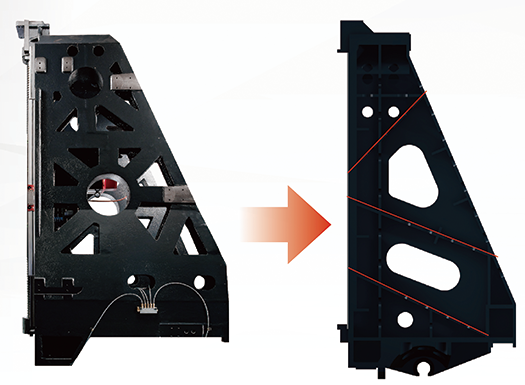 1. 一体式立柱加大跨距设计,宽度提升25%,刚性提升达15%;高刚性t型底座确保底座不变形及吸震能力强,线轨跨距高达 580mm。